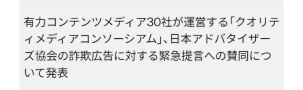 1: 香味焙煎 ★ 2024/06/06(木) 18:15:58.57 ID:swKzlDTO9 メディア30社とデジタルガレージ子会社のBI.Garageが共同運営する「クオリティメディアコンソーシアム」は、日本アドバタイザーズ協会(JAA)が発表した「社会問題化するデジタルメディア上の詐欺広... -