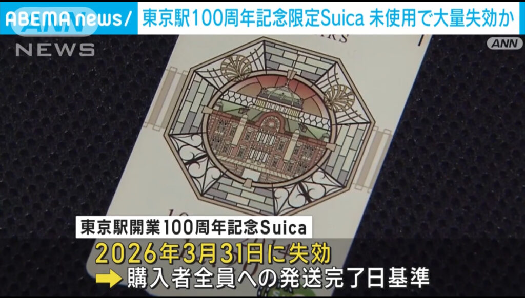 1: @おっさん友の会 ★ 2024/06/06(木) 17:52:08.31 ID:laBgLof79 東京駅の開業100周年を記念して限定発売されたSuicaについて、購入してから1回も使っていない場合、2026年3月31日で失効してしまうということです。 東京駅開業100周年記念の限定Suicaは... -