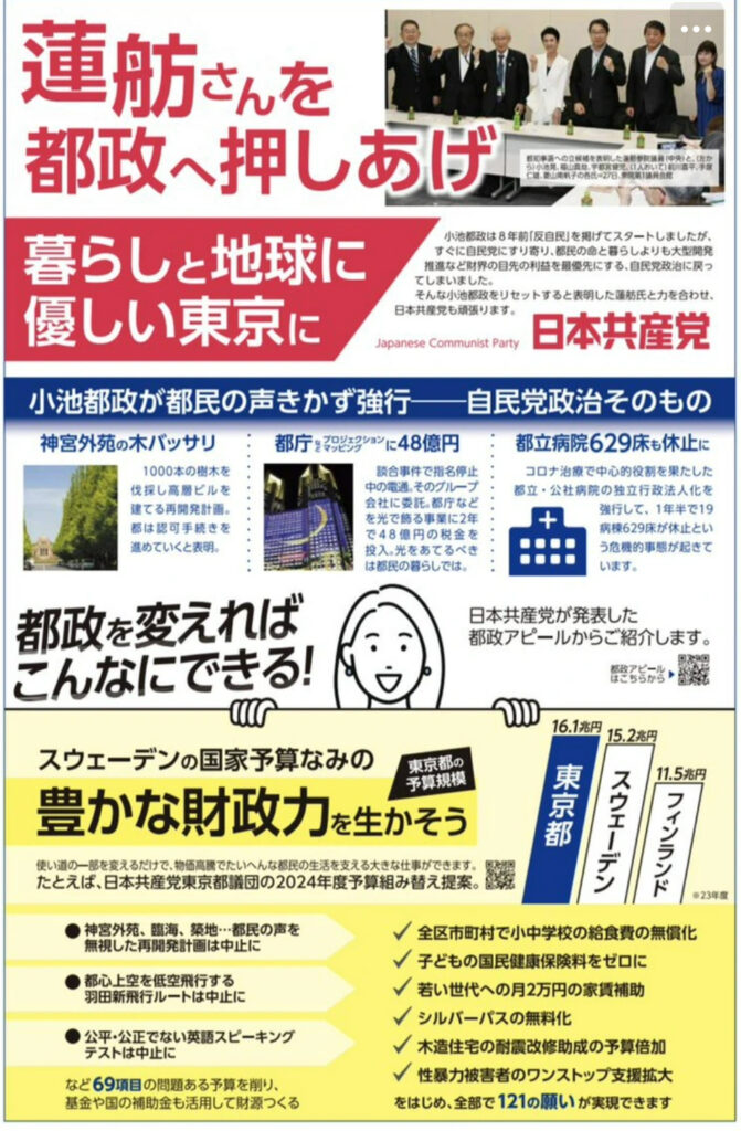 共産党、新しい政治へ─東京から変える。蓮舫参院議員都政に挑戦!