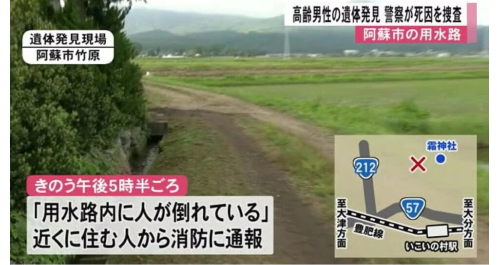 【阿蘇】高齢男性の遺体発見 用水路で