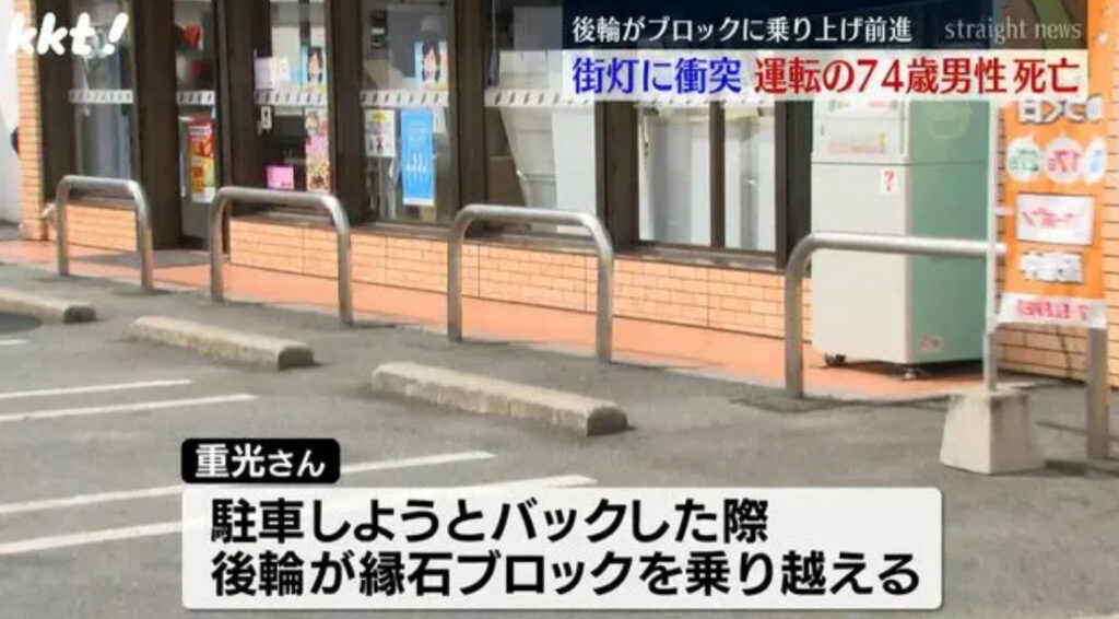 【熊本】コンビニに駐車しようとバックし縁石ブロック乗り越え前進 歩道の街灯に衝突し74歳男性死亡