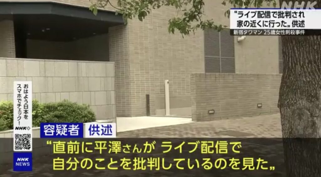 【東京】 新宿タワマン殺人事件 “女性がライブ配信で自分を批判”