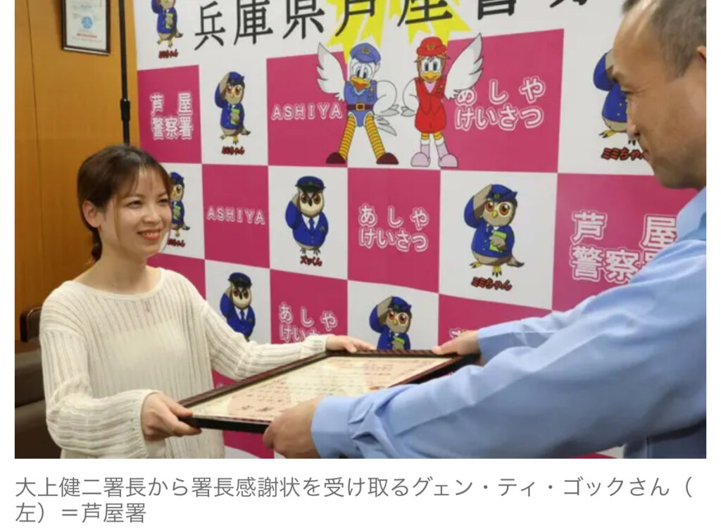 1: 夜のけいちゃん ★ 2024/05/26(日) 08:42:06.10 ID:nbwtA6839 5/26(日) 8:30配信 神戸新聞NEXT 客に声をかけて特殊詐欺被害を未然に防いだとして、兵庫県警芦屋署は22日、芦屋市月若町のコンビニ店「ローソン芦屋川駅前店」の副店長で、ベトナム籍のグ... -