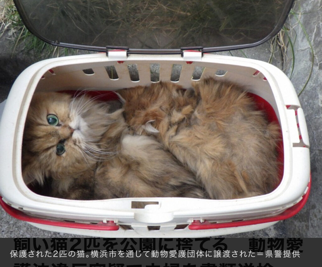 1: 少考さん ★ 2024/05/23(木) 10:12:05.24 ID:+xOU2JlC9 飼い猫2匹を公園に捨てる 動物愛護法違反容疑で夫婦を書類送検 | 毎日新聞 https://mainichi.jp/articles/20240522/k00/00m/040/264000c 2024/5/22 20:03 保護された2匹の猫。横浜市を通じて動物... -