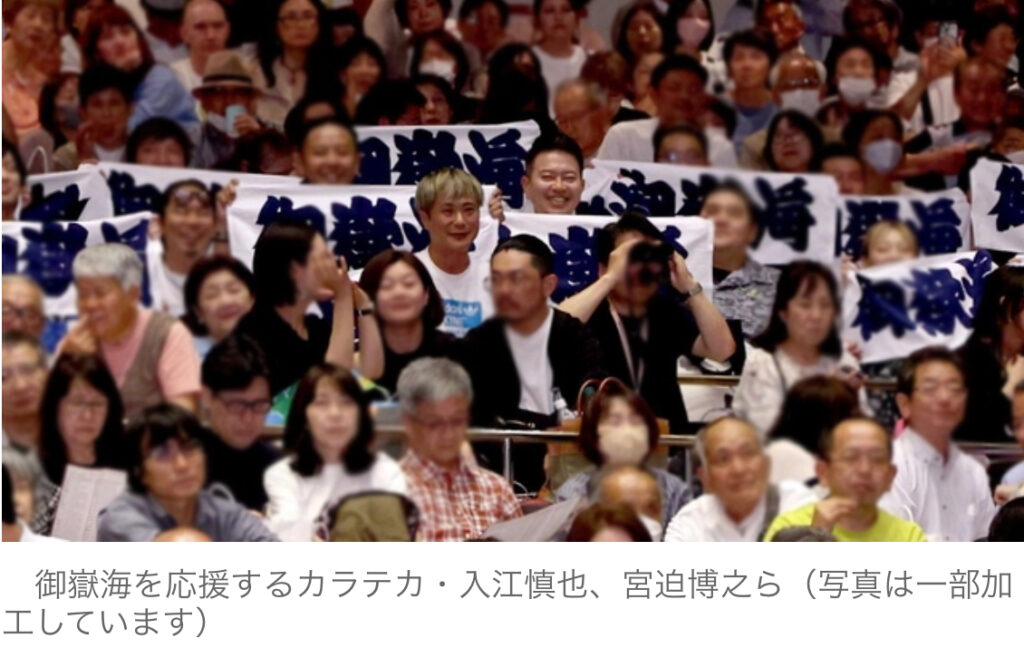 1: TUBASA ★ 2024/05/22(水) 22:38:50.58 ID:??? TID:TUBASA 「大相撲夏場所・11日目」(22日、両国国技館)元・雨上がり決死隊の宮迫博之がNHKの相撲中継に映り、ネットが騒然となった。 宮迫は御嶽海応援団の一員として観戦したもよう。「御嶽海... -