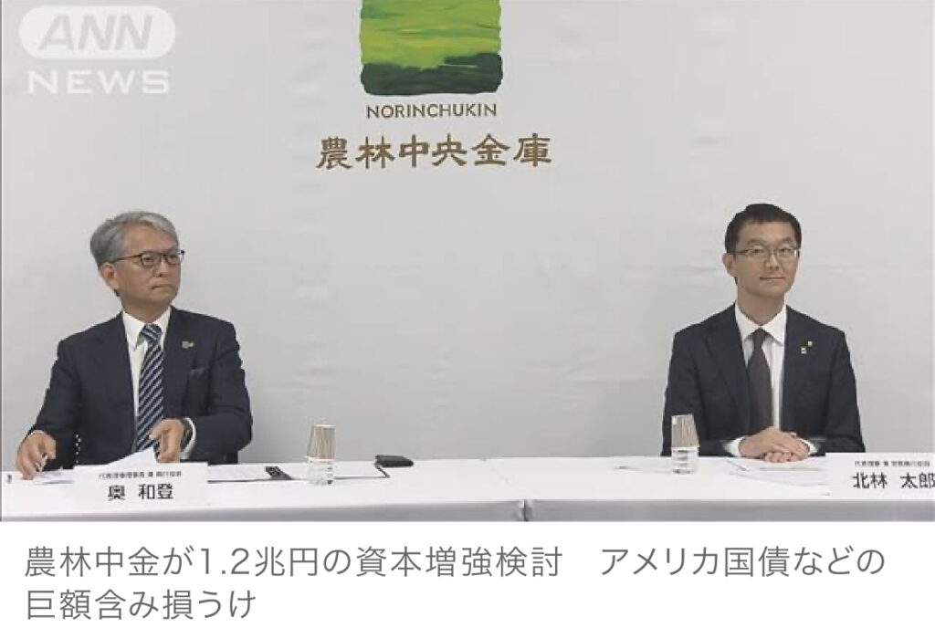 【悲報】農林中央金庫、アメリカ国債などの含み損が約2兆2000億円に膨らんでいることが判明