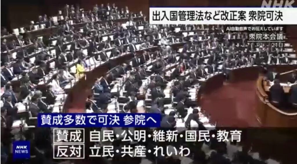 1: 名無しさん@涙目です。(愛媛県) [US] 2024/05/21(火) 17:31:57.33 ID:YocyR75L0● BE:135853815-PLT(13000) sssp://img.5ch.net/premium/1372836.gif 出入国管理法などの改正案 衆議院本会議で可決 参議院へ https://www3.nhk.or.jp/news/html/20240521... -