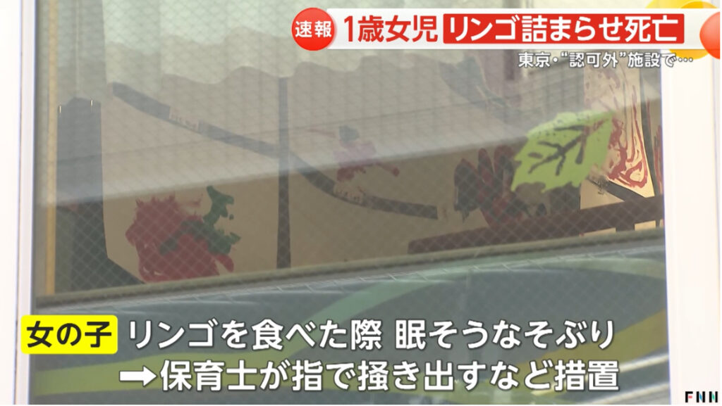 1歳5カ月の女の子 各辺約2cm、厚さ3cmの給食のリンゴを喉に詰まらせ死亡 東京都の認可外保育施設で