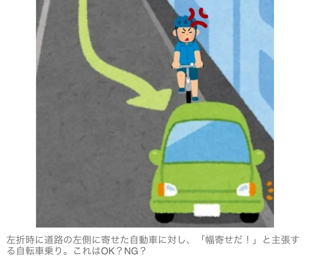 1: モフモフちゃん ★ 2024/05/21(火) 14:36:32.27 ID:/jedg7ln9 「幅寄せだ!」左折車の左をすり抜ける自転車の動画に批判殺到「チャリ乗りの主張」は正しい?教習所指導員に聞いた まいどなニュース5/21(火) 8:00配信 https://news.yahoo.co.jp/articles/... -