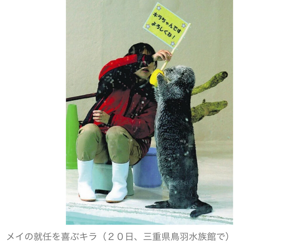 1: 煮卵 ★ 2024/05/21(火) 11:31:53.65 ID:BbY6bQF+9 鳥羽水族館(三重県鳥羽市)の人気者・ラッコのメイ(メス、20歳)が、鳥羽の魅力を全国に発信する「鳥羽市ふるさと応援大使」に就任した。 鳥羽水族館は全国に「ラッコブーム」を巻き起こしたが、現... -