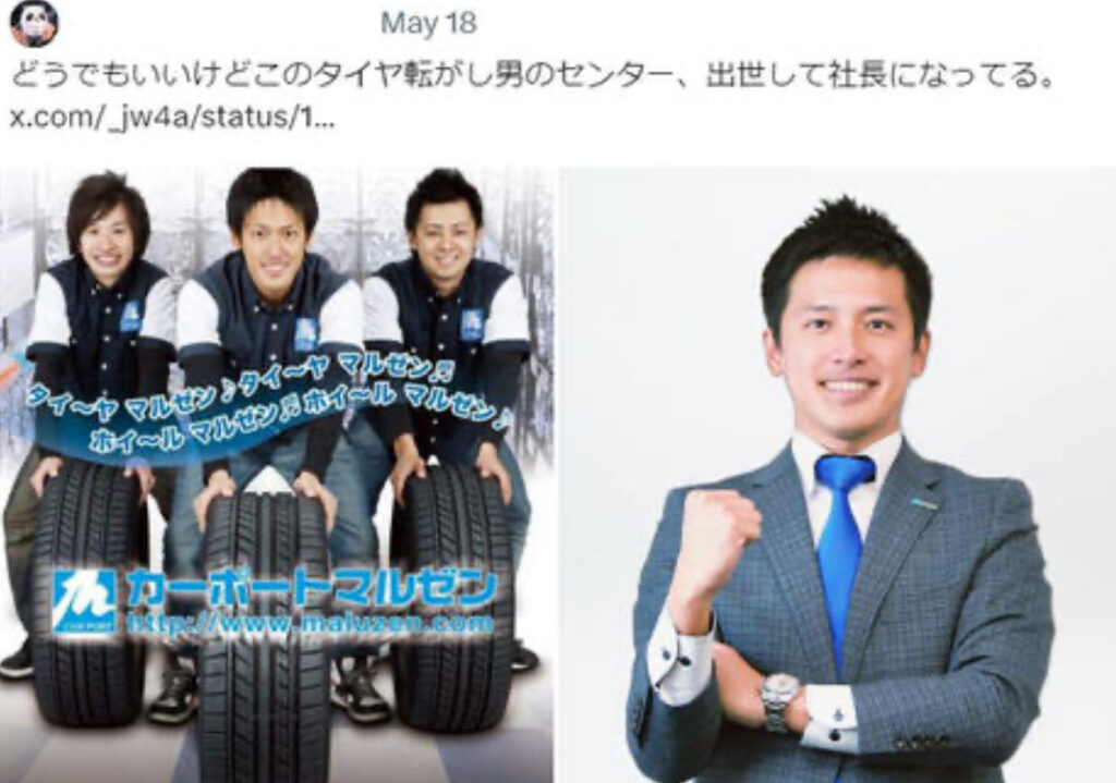 「タイ~ヤ、マルゼン」CMのセンター男性が「出世して社長に」SNS驚きの声に本人反応