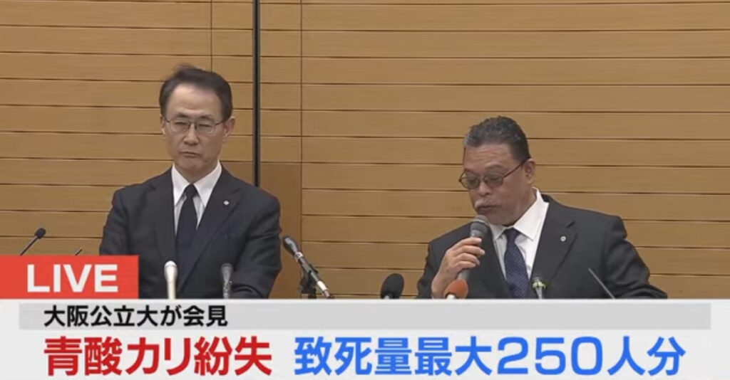 大阪公立大学『致死量250人分』の青酸カリと青酸ソーダを紛失 記者会見で謝罪
