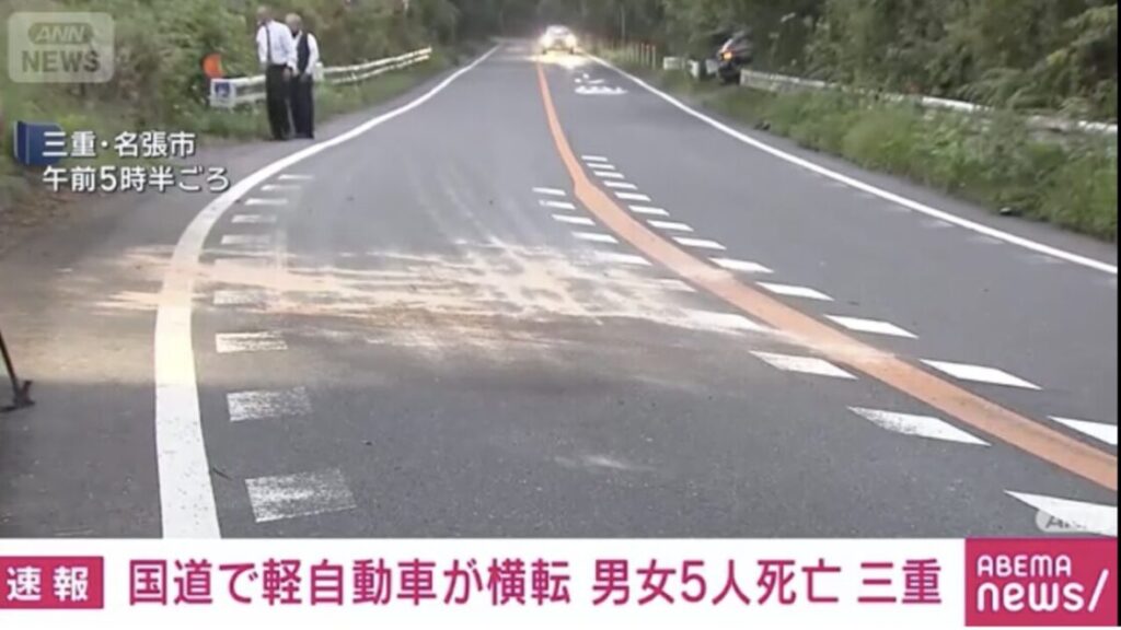 【三重】国道で軽自動車が横転 男女5人死亡、男性1人重傷 名張市