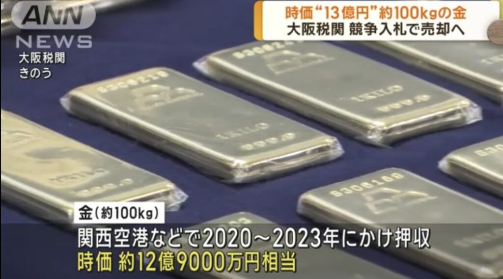 1: PARADISE ★ 2024/05/15(水) 19:39:58.89 ID:2uyNir7s9 大阪税関は13日、密輸事件で押収した金およそ100キロを一般競争入札で売却すると発表しました。 今回の金は関西空港などで2020年から2023年の間に押収されたもので、およそ12億9000万円相当に... -