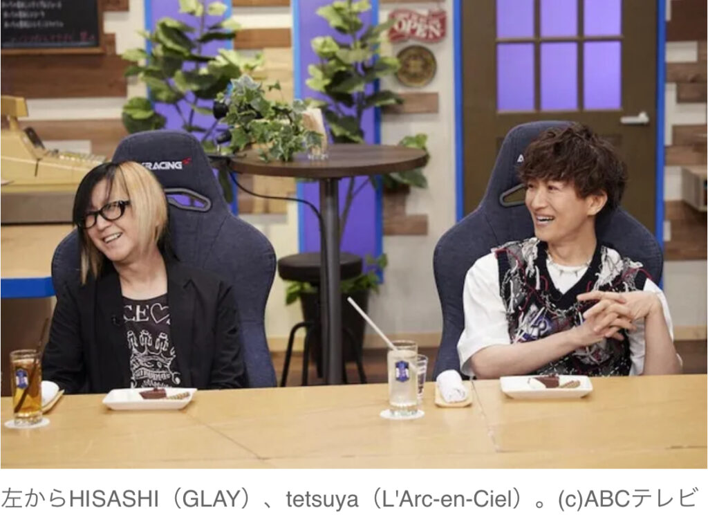 1: 尺アジ ★ 2024/05/14(火) 23:23:44.02 ID:/PGYymOo9 明日5月15日にABCテレビでオンエアされる「これ余談なんですけど…」にHISASHI(GLAY)とtetsuya(L'Arc-en-Ciel)がゲスト出演する。「これ余談なんですけど…」は司会のかまいたちとゲストが気になる...