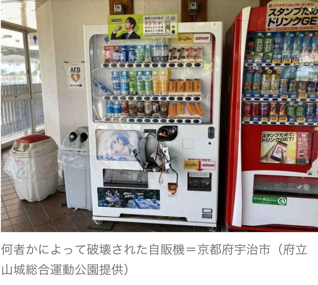 京都で自販機荒らし相次ぐ 治安悪すぎだろ