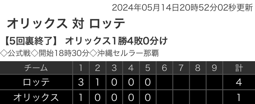 【野球】パ・リーグ B 1-4 M [5/14] ロッテ降雨コールドで連敗ストップ 友杉先制スクイズ オリックス3連敗