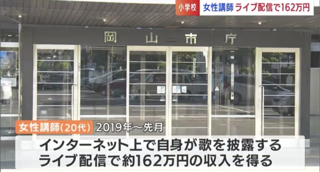 1: 名無しさん@涙目です。(秋田県) [US] 2024/05/14(火) 18:41:31.82 ID:WHtrbtQ+0● BE:194767121-PLT(13001) sssp://img.5ch.net/ico/nida.gif 岡山市は、市立小学校に勤める20代の女性講師が162万円あまりの副業収入を得ていたとして、戒告処分としたこ... -