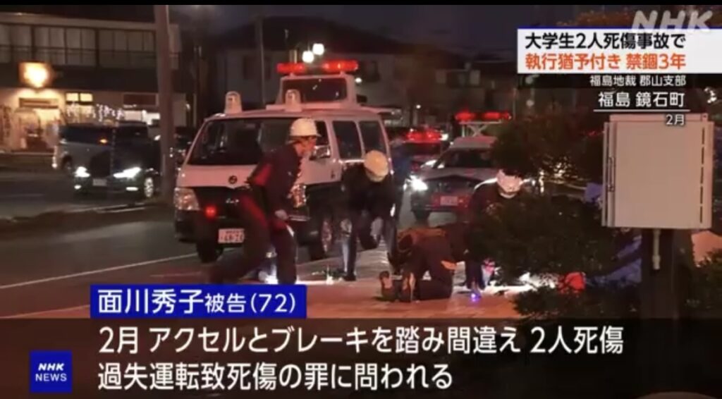 大学生2人死傷事故で 72歳女性被告に執行猶予付き 禁錮3年 福島地裁 郡山支部