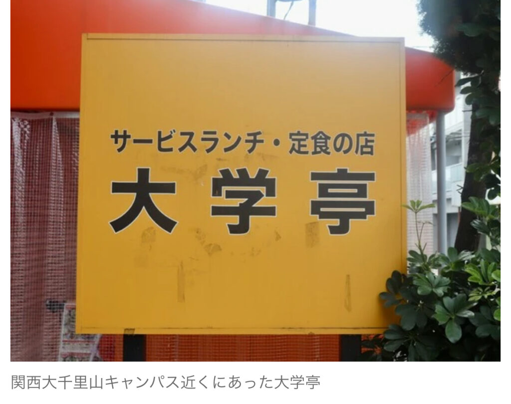 1: 窓際被告 ★ 2024/05/12(日) 17:59:13.09 ID:IfANzYPb9 学生街で40年 学生に愛された大盛り定食屋が突然に無念の閉店 理由は原材料高ではなくて 大阪府吹田市の関西大千里山キャンパス近くで、1984年(昭和59)から営業してきた定食屋「大学亭」...