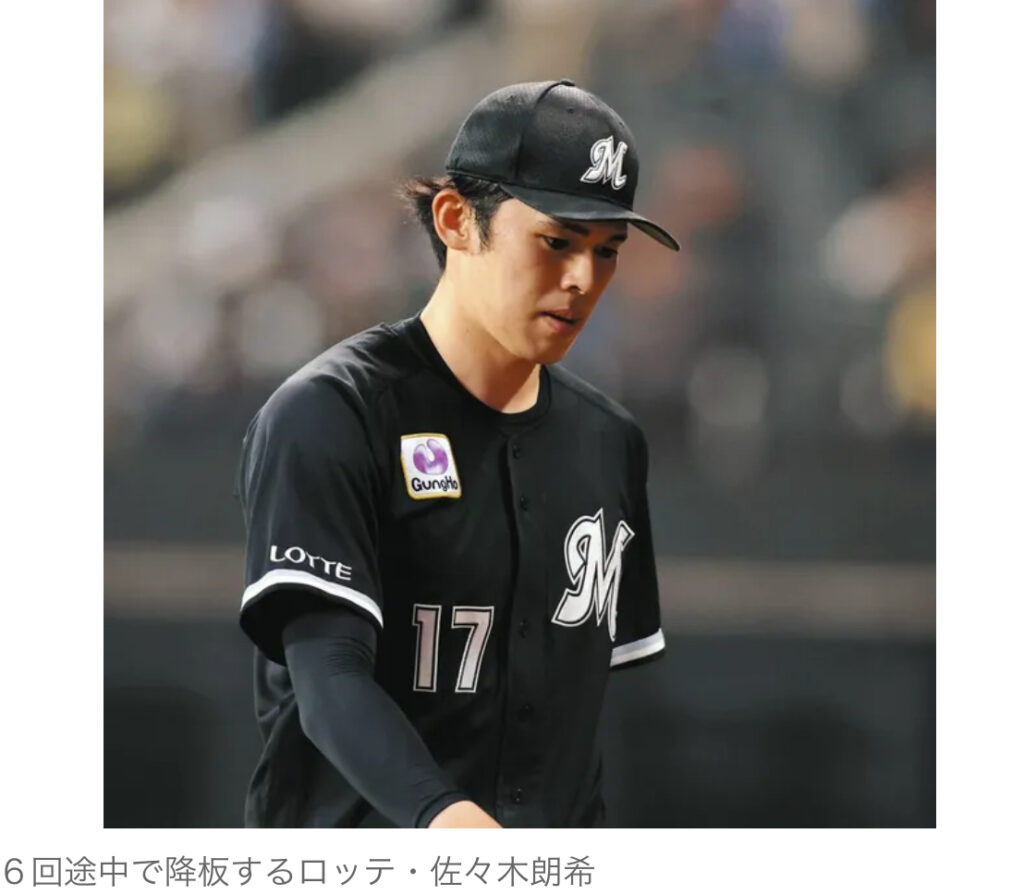 1: 冬月記者 ★ 2024/05/10(金) 22:14:54.97 ID:tsBfTnT99 https://news.yahoo.co.jp/articles/16fc05da5aa0a59b764338564bd3de0e4479daea 佐々木朗希、怒り噴出! 降板後にベンチ内で何かを蹴飛ばすしぐさ 5イニング2/3を5失点KO ◇10日 日本ハム―ロ...