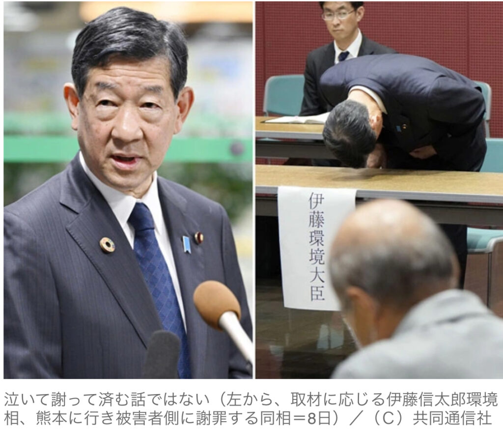 1: チュン太 ★ 2024/05/10(金) 11:40:04.29 ID:??? TID:chunta 裏金事件でボロボロの岸田政権から、新たなトンデモ大臣が飛び出した。 水俣病患者・被害者の団体が今月1日に伊藤信太郎環境相と懇談した際、環境省職員が被害者側の発言中にマイクの音をオフ... -