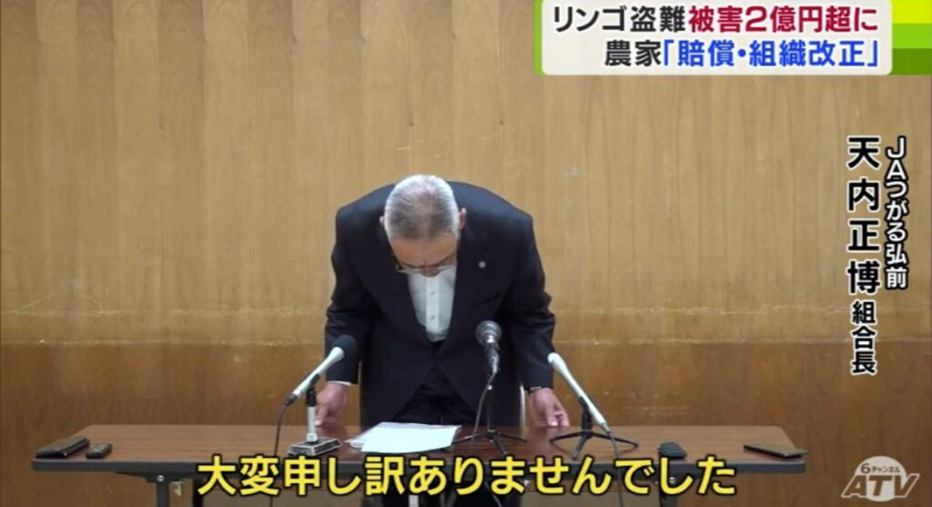 JAつがる弘前従業員によるりんご窃盗事件、280回で被害額2億2400万円