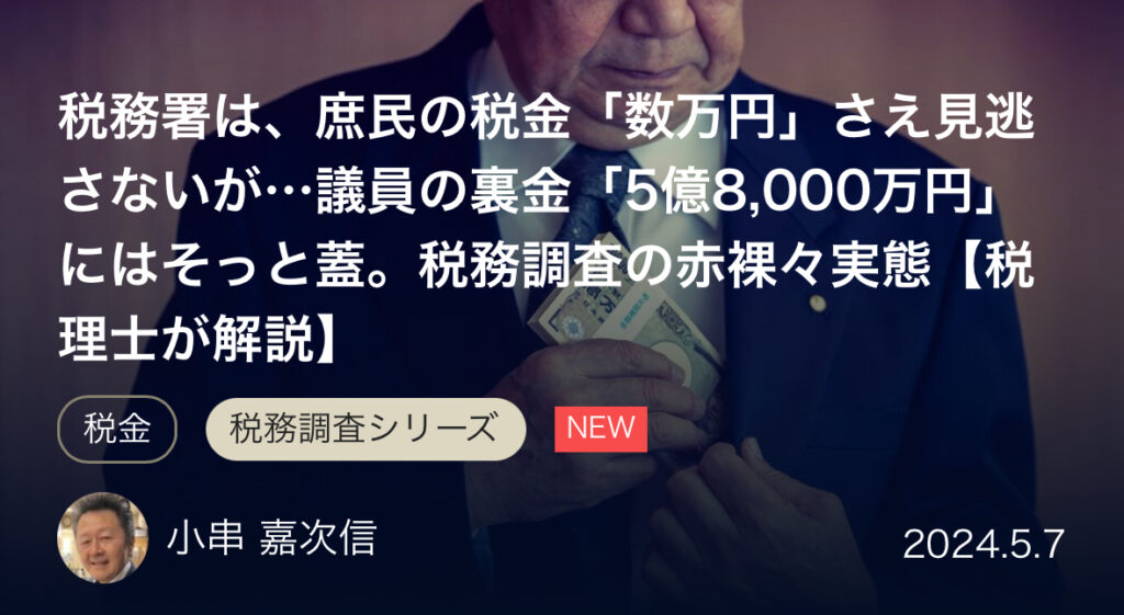 【税務署】庶民の税金「数万円」さえ見逃さないが…議員の裏金「5億8,000万円」にはそっと蓋。税務調査の赤裸々実態【税理士が解説】