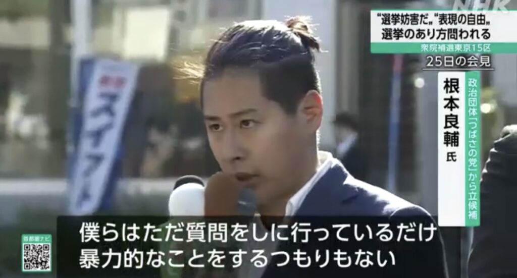 1: 少考さん ★ 2024/05/01(水) 07:10:26.69 ID:c+m8SzTt9 東京15区 補選 選挙妨害か? 表現の自由か?警視庁が候補者に異例の警告 公職選挙法 選挙の自由妨害罪とは | NHK | 選挙 https://www3.nhk.or.jp/news/html/20240430/k10014434831000.html 2024年4... -