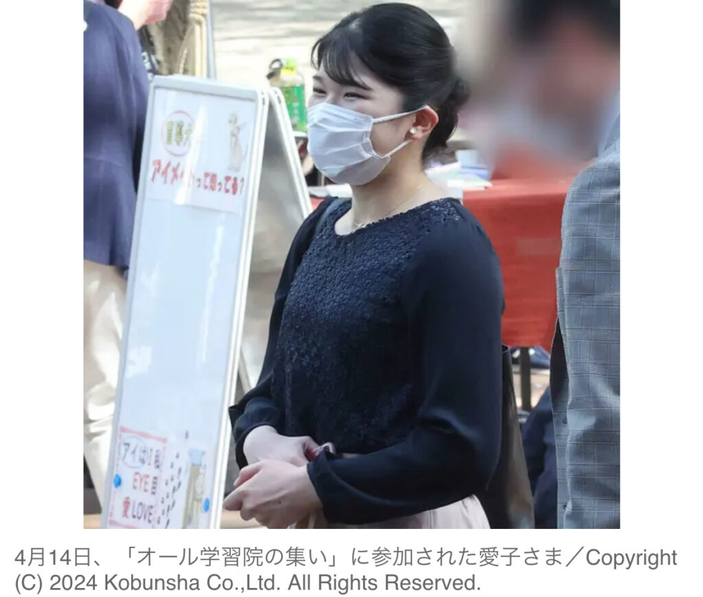 1: コバーン ★ 2024/05/01(水) 08:46:23.59 ID:??? TID:cobain ネイビーのブラウスにピンクのスカートをお召しになり、学習院目白キャンパスを歩かれる愛子さま。4月中旬、私的に「オール学習院の集い」に参加された際のご様子だ。なかでもSNS上やニュース... -