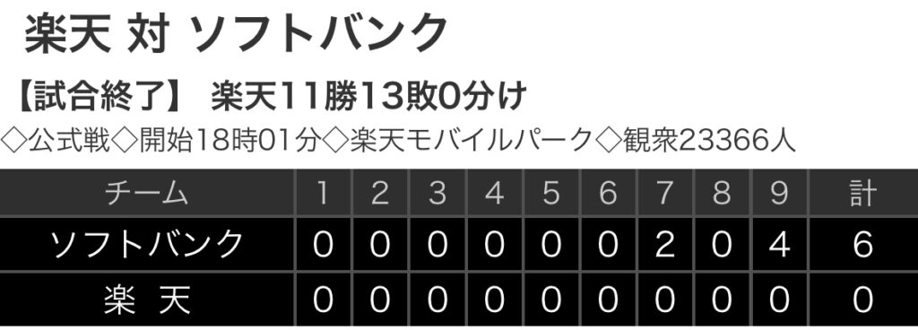 【野球】パ・リーグ E 0-6 H [9/25] ホークス連勝 マジック2 栗原先制打、野村ダメ押し打、大関7回無失点 楽天連敗