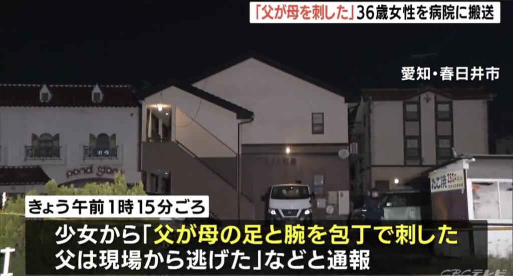 【事件】娘を名乗る少女から「父が母の足と腕を刺した」と通報 愛知・春日井市で殺人未遂事件