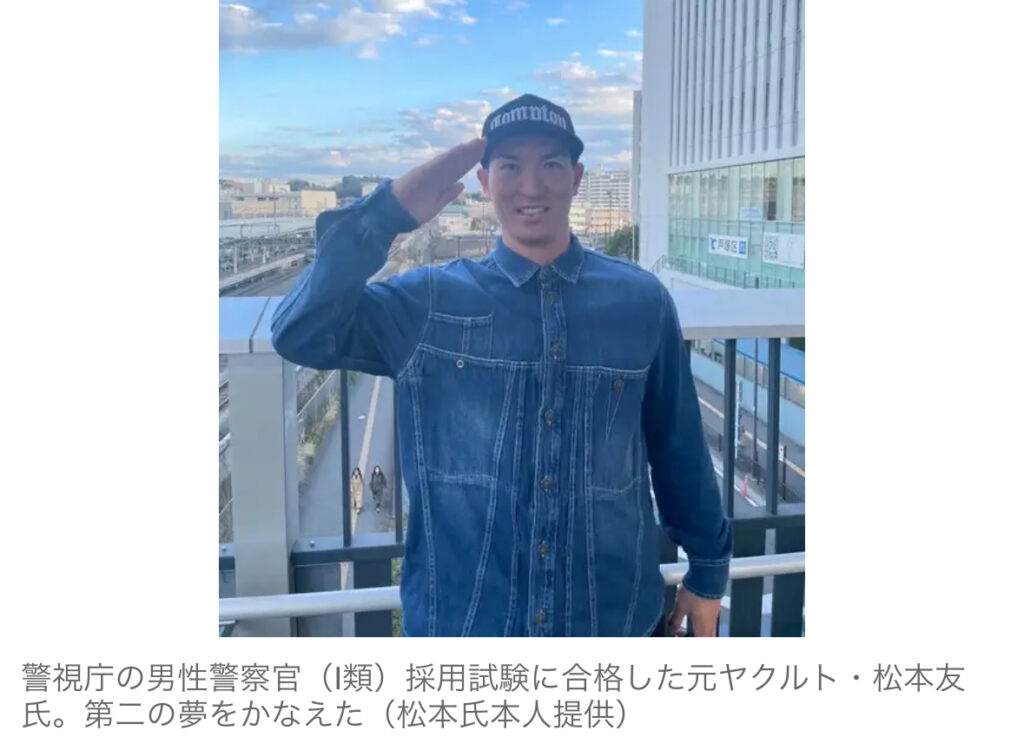 1: 幸水 ★ 2024/03/28(木) 09:28:51.13 ID:??? TID:kousui 昨季限りで現役を引退した元ヤクルト内野手、松本友氏(29)が、警視庁の警察官(男性Ⅰ類)採用試験に合格したことが27日、分かった。学生の頃からの〝第二の夢〟をかなえ、新たな人生をスタ... -