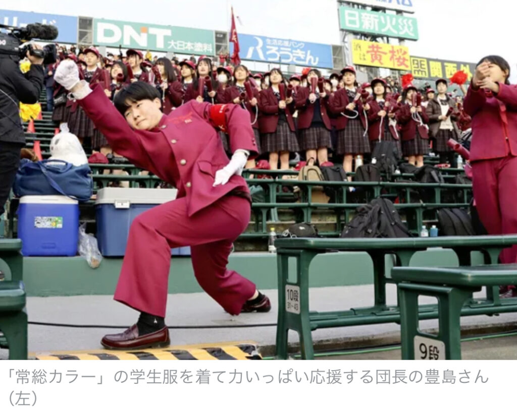 1: Ailuropoda melanoleuca ★ 2024/03/27(水) 22:20:21.95 ID:uxDTOta69 2024/03/27 20:24 選抜高校野球大会で27日に登場した常総学院(茨城)のアルプススタンドでは、「常総カラー」のえんじ色の学生服を着た女子生徒4人が、「オス!」と声を張り上... -