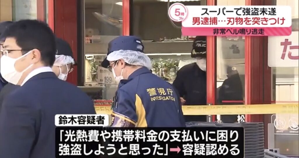 光熱費や携帯料金の支払いで困りスーパーで強盗 69歳の男逮捕