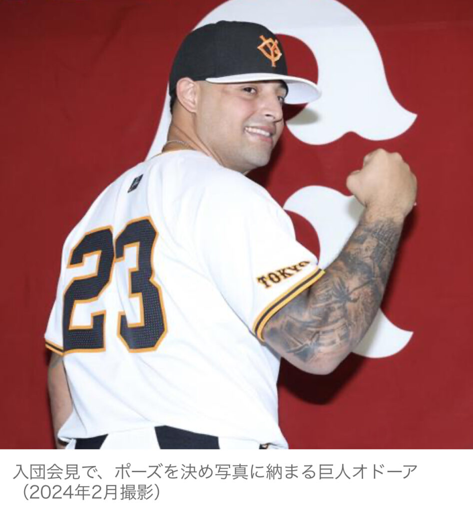 1: Ailuropoda melanoleuca ★ 2024/03/26(火) 20:07:13.34 ID:uMPB+MsB9 2024年3月26日20時4分 巨人ルーグネッド・オドーア外野手(30=パドレス)が電撃退団した。 26日、球団が「3月29日の開幕戦のメンバーからは外れるためファームで調整するよう提案し...