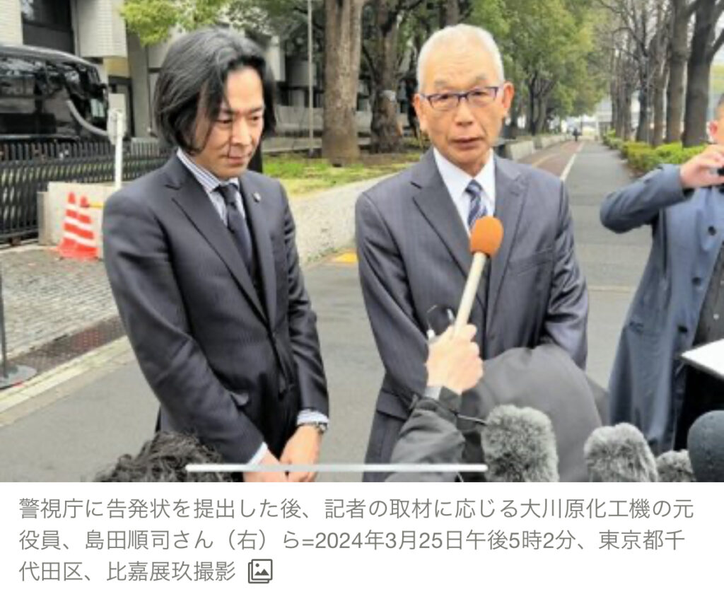 1: 少考さん ★ 2024/03/25(月) 23:05:27.44 ID:rx3WjZAo9 「調書を破棄した」として捜査員らを刑事告発 大川原化工機の元役員:朝日新聞 https://www.asahi.com/articles/ASS3T34M1S3TUTIL009M.html比嘉展玖 2024年3月25日 20時00分 警視庁に告発状を提... -