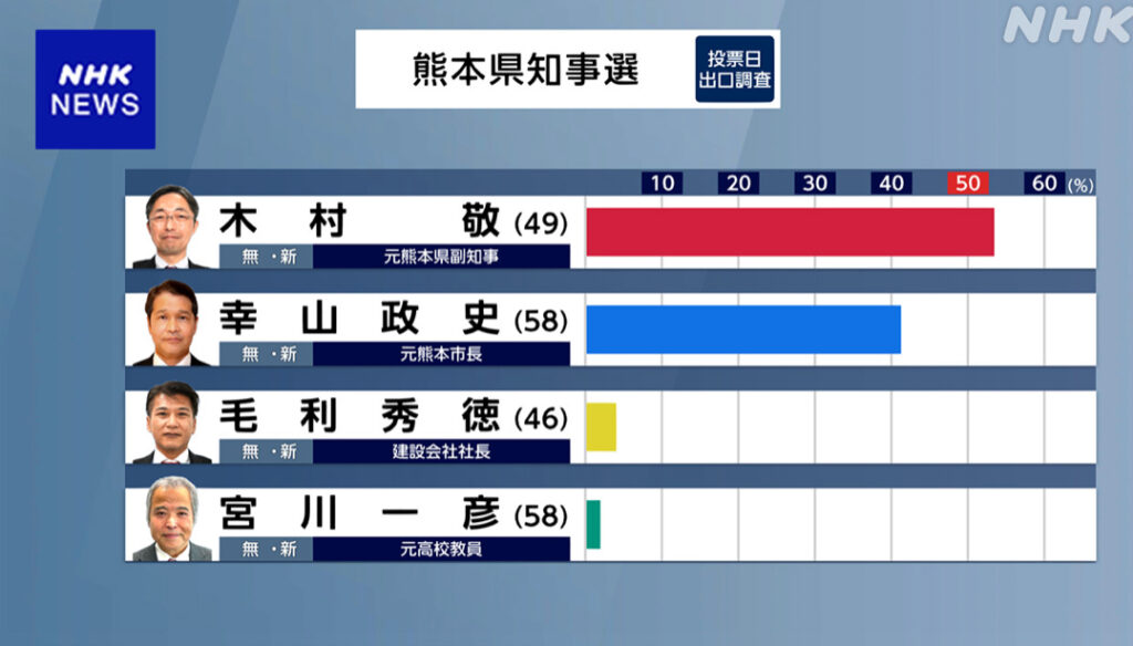 熊本県知事選 元副知事の木村敬氏 初めての当選確実 自民・公明が推薦(20:00)