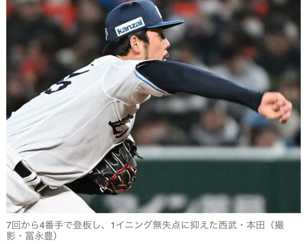 1: フォーエバー ★ 2024/03/24(日) 00:41:45.75 ID:0ryS11pw9 3/23(土) 22:27配信 西スポWEB OTTO! 7回から4番手で登板し、1イニング無失点に抑えた西武・本田(撮影・冨永豊) ◆オープン戦・西武0-3ヤクルト(23日、ベルーナドーム) 西武の本田圭... -