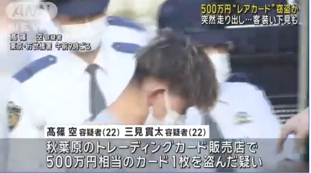 1: PARADISE ★ 2024/03/23(土) 13:43:24.65 ID:77GTrNHK9 東京・秋葉原のトレーディングカード販売店で、500万円相当のカードを盗んだとして男2人が逮捕されました。 高篠空容疑者(22)と三見貫太容疑者(22)は13日、秋葉原のトレーディングカード販売... -
