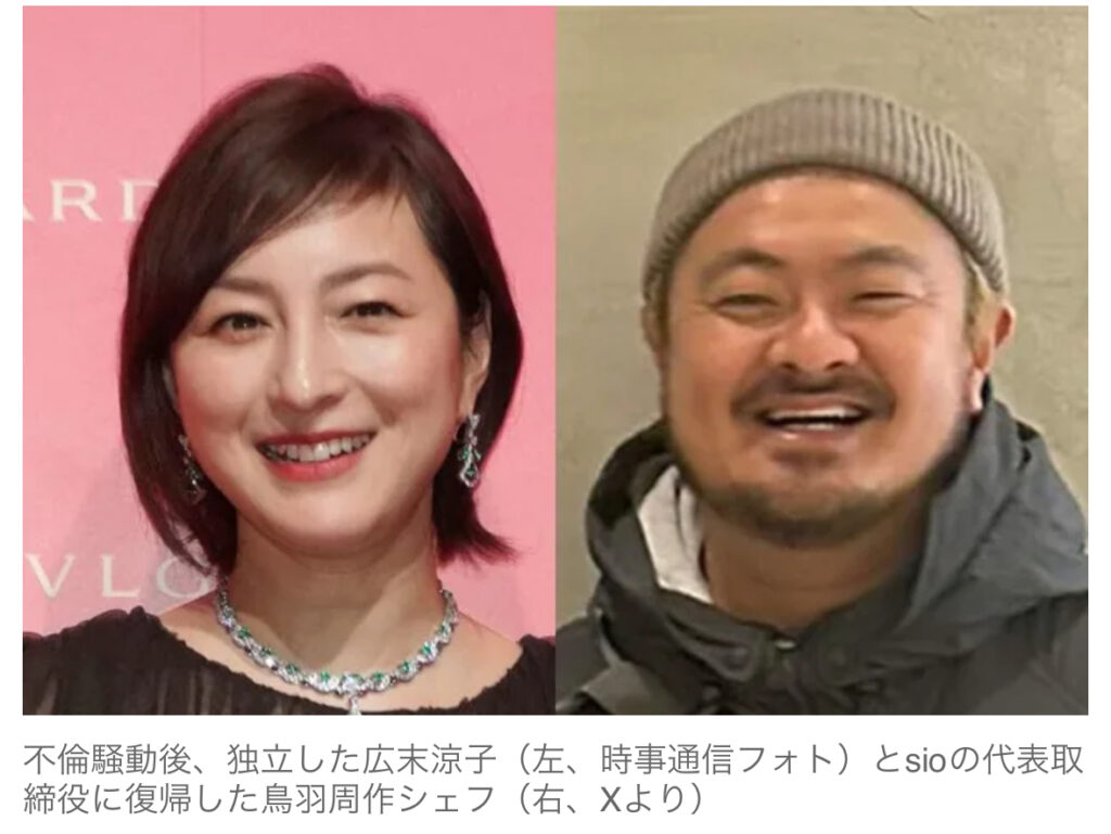 【芸能】「広末涼子が独立した日」に鳥羽周作シェフがレストラン運営会社代表取締役に復帰 2人の新たな記念日になるか