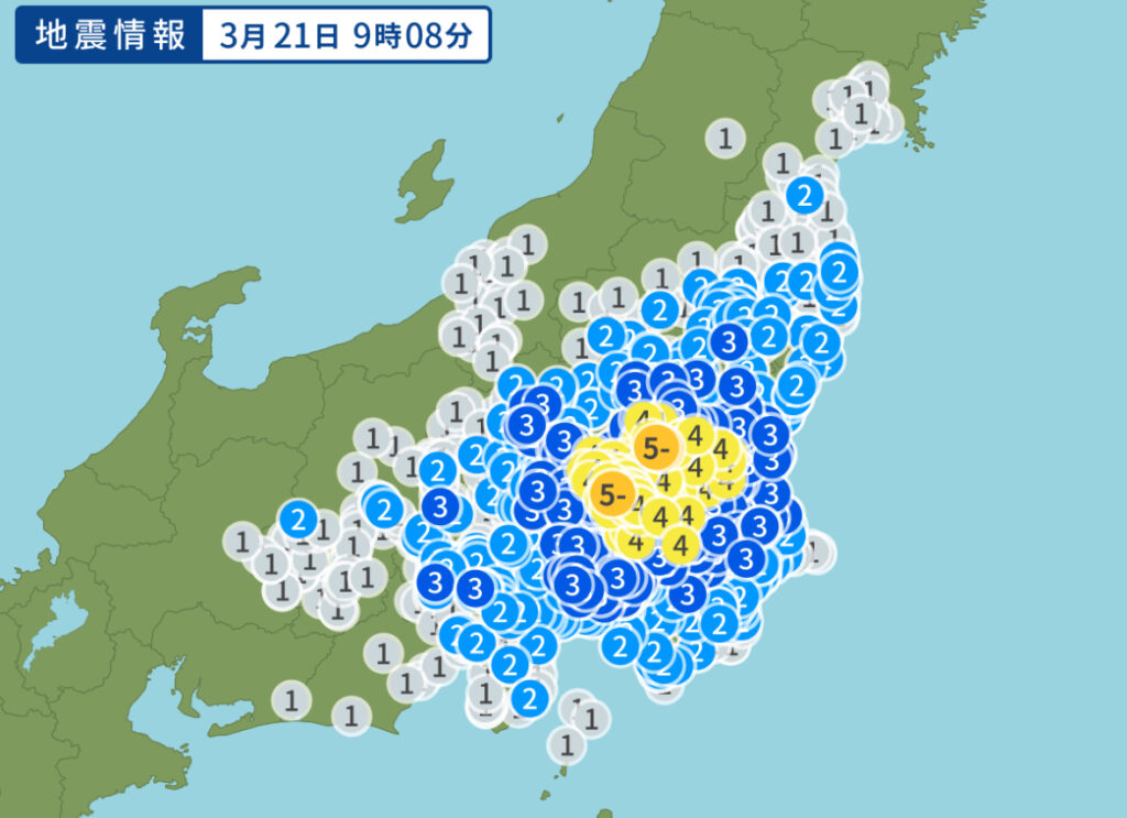 1: ニョキニョキ ★ 2024/03/21(木) 09:11:07.44 ID:lfo1ibhw9 https://emergency-weather.yahoo.co.jp/weather/jp/earthquake/20240321090811/?1710979788 引用元: ・【地震】震度4■関東 [ニョキニョキ★]3: アフターコロナの名無しさん 2024/03/21(木) 09:... -
