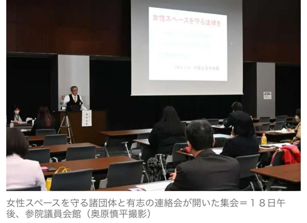 1: ばぐっち ★ 2024/03/19(火) 22:18:43.63 ID:??? TID:BUGTA 女性の権利保護を目指す「女性スペースを守る諸団体と有志の連絡会」は18日、国会内で集会を開き、性同一性障害特例法の改正案や女性スペースに関する法案など会がまとめた独自案について説... -