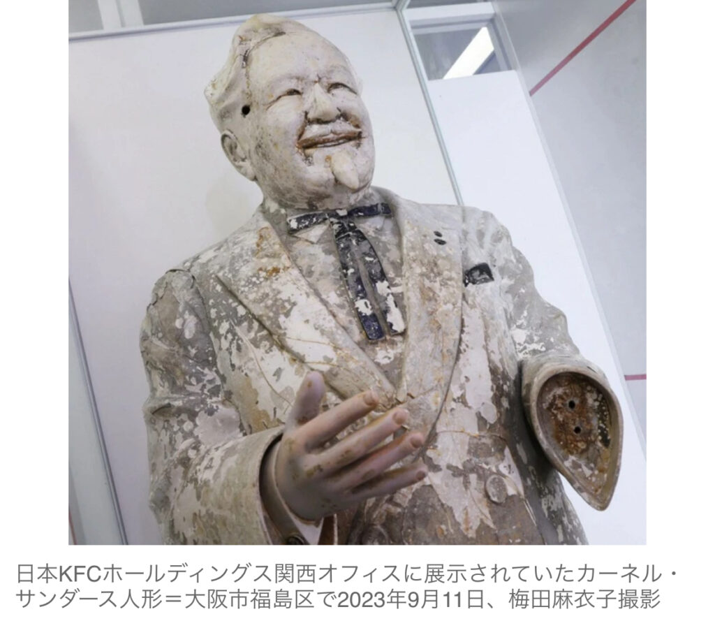 1: 煮卵 ★ 2024/03/19(火) 13:59:23.45 ID:GiTAb5/D9 日本KFCホールディングス(横浜市)は19日、プロ野球・阪神タイガースがリーグ優勝した1985年に大阪・ミナミの道頓堀川に投げ込まれ、24年後に見つかったカーネル・サンダース人形を廃棄したと発表した... -