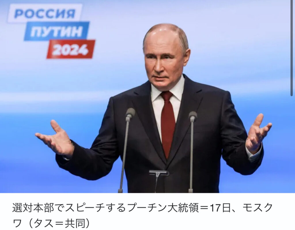 1: 名無しさん@涙目です。(みょ) [AU] 2024/03/18(月) 05:40:10.72 ID:3y6nD4bH0 BE:595582602-2BP(3745) sssp://img.5ch.net/ico/anime_shii03.gif プーチン大統領の圧勝確実に ウクライナ侵攻継続に「信任」 https://nordot.app/1142158987975951037 ... -