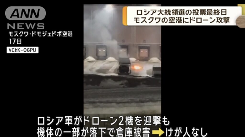 【戦況】モスクワの空港にドローン攻撃 ロシア大統領選最終日 (動画あり)