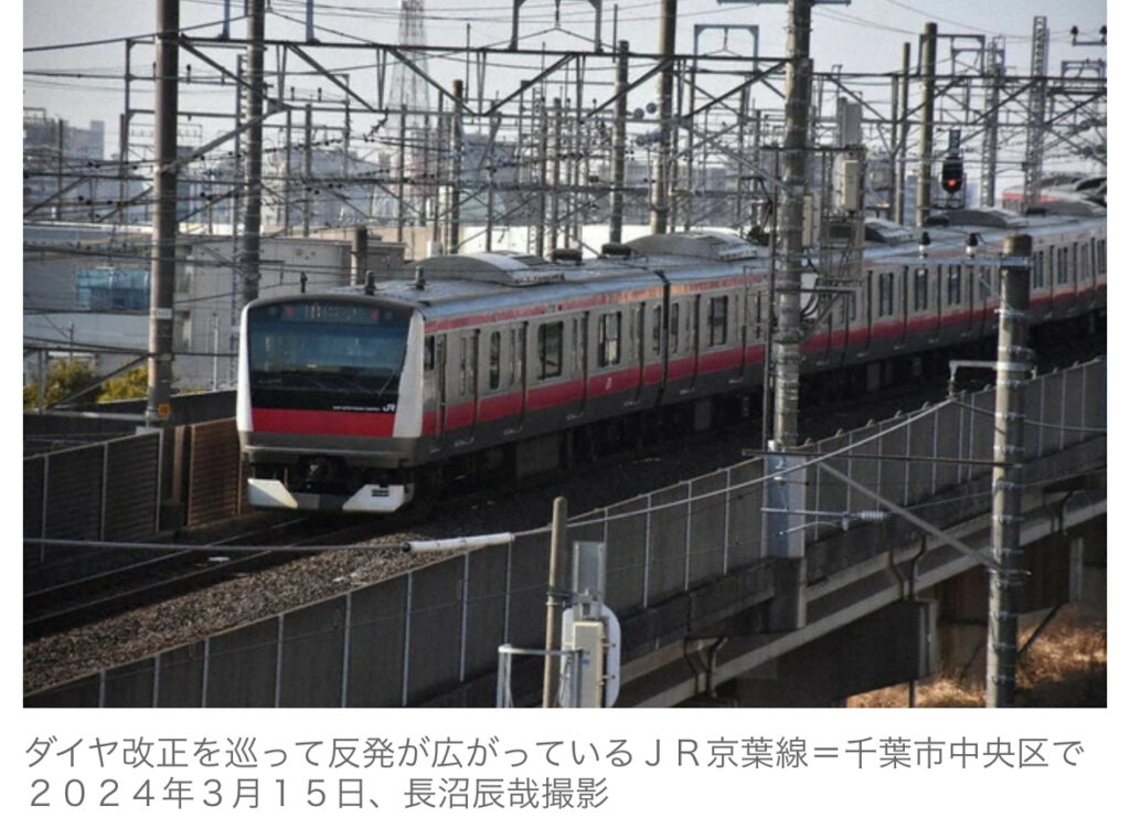 1: ギャラガー ★ 2024/03/17(日) 19:44:59.91 ID:??? TID:gallagher JR東日本のダイヤ改正により16日、京葉線(東京―蘇我)で通勤快速を廃止した新ダイヤの運行が始まった。2023年12月のダイヤ改正発表以来、「市民生活に計り知れない大打撃にな... -