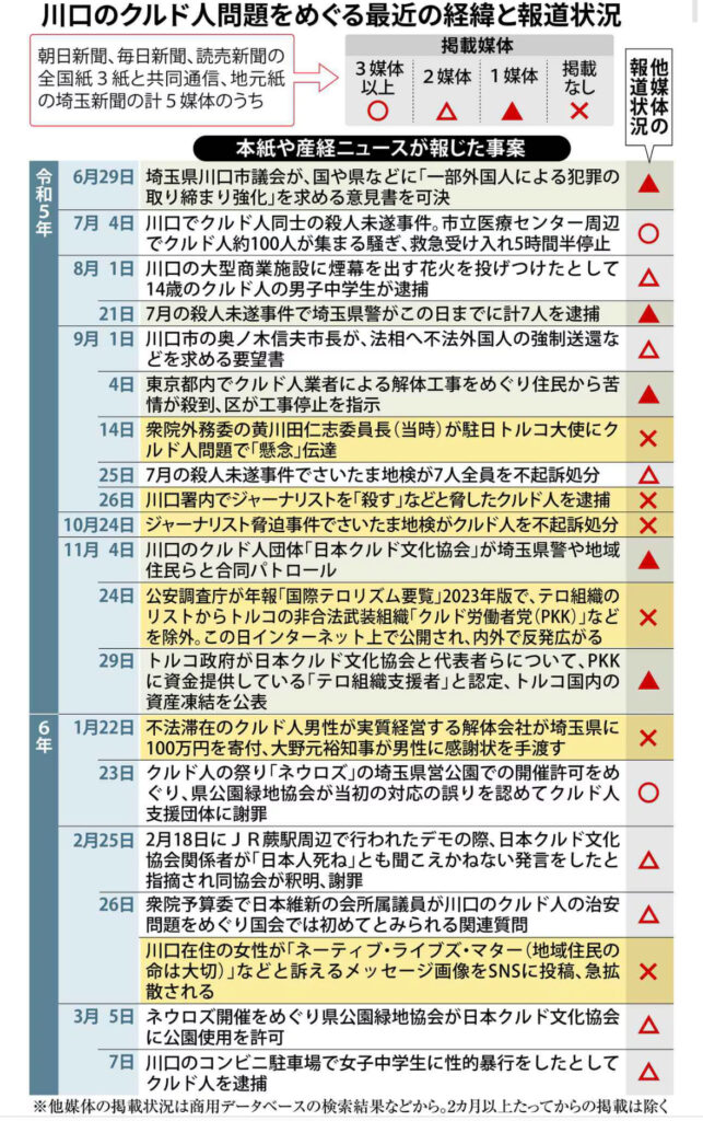 川口クルド問題 朝日、共同などの報道状況を検証 事件報道わずか、イベントには好意的 (産経調べ)