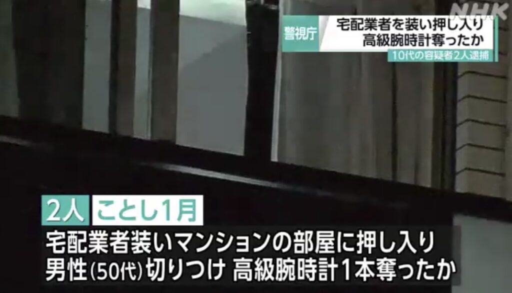 【東京】宅配業者装って押し入り高級腕時計奪ったか 18歳と19歳の2人を逮捕 「闇バイト」に応募して事件に関わる 新宿