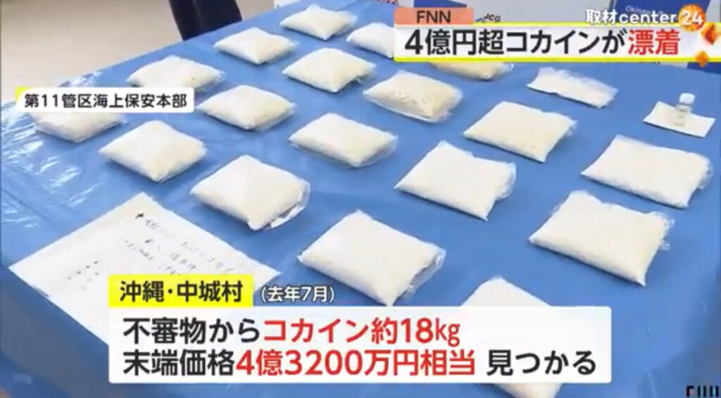 コカ◯ン“末端価格4億3200万円相当”が漂着 約28kgが入った袋も…沖縄近海が密輸ルートになっている可能性